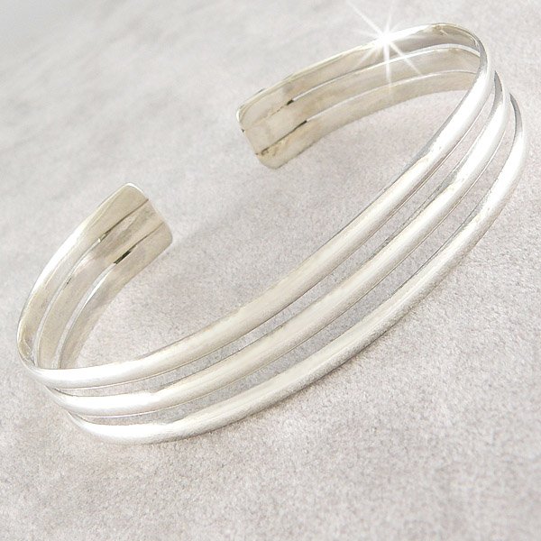 STERLING SILVER THIN POLISHED 3-ROW CUFF BRC