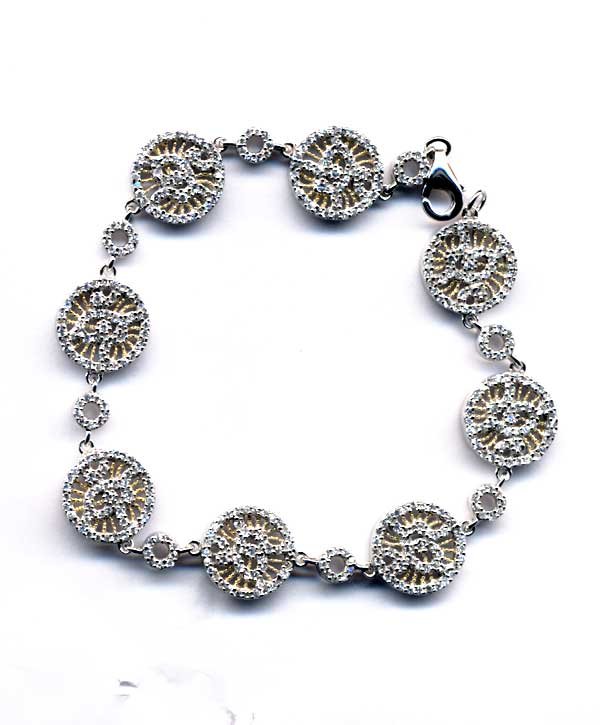Sterling Silver-Two Tone CZ Circle Bracelet