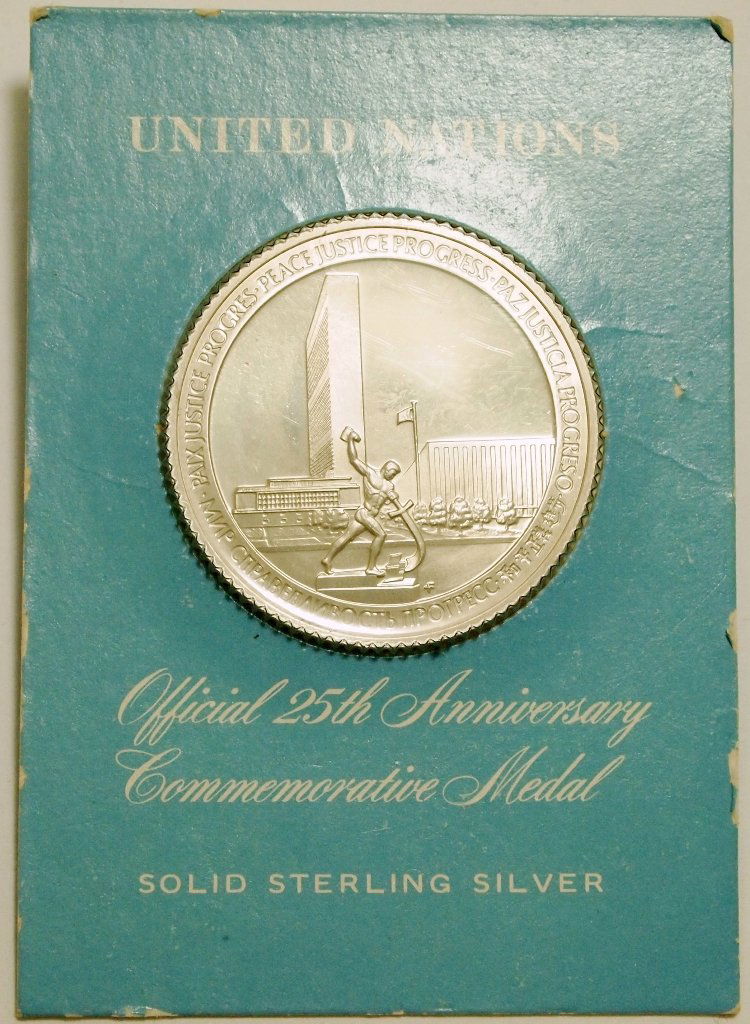 United Nations official 25th Anniversary commemorative medal in solid sterling silver by FranklinSouth Jersey Auction by Babington Auction Inc4.6(144)$506 days Left
