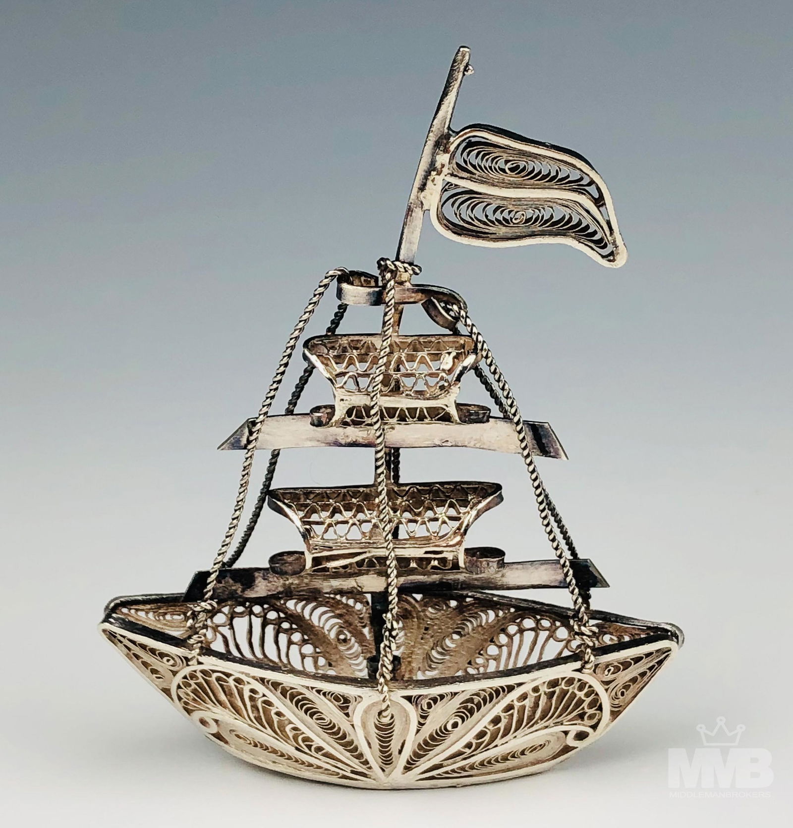 Chinese Enameled Silver Filigree Bird and Boat LOTMar 11, 2026Four-Sail Gaff-Rigged Racing Pond Yacht3 days LeftVintage Italian Gondola Silver Filigree Brooch/PinDutch Silver Miniature Sail Boat 44g3 days LeftDutch Silver Miniature Sail Ship 144g3 days LeftNERESHEIMER & SOHNE GERMAN SILVER NEF Hanau, Circa 1916 Approx. 32.2 troy oz.3 days LeftA filigree work Nef,A sterling silver Mexican miniature ship model1 day LeftSterling Silver Sailboat Figurine on Wood BaseMar 25, 2026Wooden Flying Dutchman Limited Model Pirate Ship 26"Mar 05, 2026Sterling & Glass Sailboat SculptureMar 15, 2026Womens Vintage Estate 14K Gold Michael Anthony Sailboat Charm PendantMar 12, 2026Curtis Jere Brass Sailboat SculptureMar 05, 2026Flying Dutchman' Pirate Ship Wooden Model 14"Mar 05, 20265 Silver Miniature FiguresMar 14, 2026A Rare Filigree and Gilding Flower Pattern Dragon boat Ornament,Inlaid GemsMar 14, 2026
