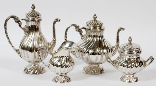 PRESSED LACY CALIFORNIA COVERED SUGARS AND CREAMER, LOT THREE6 days LeftENGLISH SILVER LUSTRE CERAMIC TEA AND COFFEE ARTICLES, LOT OF SIX5 days LeftWilliam Hunter 1842 Sterling Teapot Set of Three23 hrs LeftA FOUR-PIECE SILVER 'BAMBOO' TEA AND COFFEE SERVICE, MARK OF ZEE WO, SHANGHAI, CIRCA 1870-1925Mar 11, 2026Sterling Coffee and Tea Set by Reed & BartonMar 10, 2026Gorham Sterling 5 Pc. Coffee and Tea SetMar 10, 2026Alka Bavaria Rosemarie Tea Pot Creamer & Sugar BowlMar 17, 2026E.G. WEBSTER & SON SILVER-PLATED FIVE-PIECE COFFEE AND TEA SERVICE5 days LeftGorham Plymouth Sterling Silver Coffee & Tea SetMar 19, 2026Bailey, Banks & Biddle Queen Anne Sterling Tea Set1 hr Left(4) PIECE ASSEMBLED STERLING TEA SERVICE6 days LeftWilhelm BINDER. 6-piece tea and coffee set in Queen Anne style. 925, 835 and 800 silver.20 hrs LeftFour Piece Chinese Export Silver Tea and Coffee Set, Marked 'C.J'2 days Left3 pcs Vintage Silver Plated Tea Pots, incl. 5th Ave Co., Meriden & Wilcox. Very Good Condition.Garret Forbes American Coin Silver 4-Piece Tea Set6 days LeftANTIQUE SILVER-PLATE CHILDREN'S TEA SET IN ORIGINAL FITTED BOX6 days Left