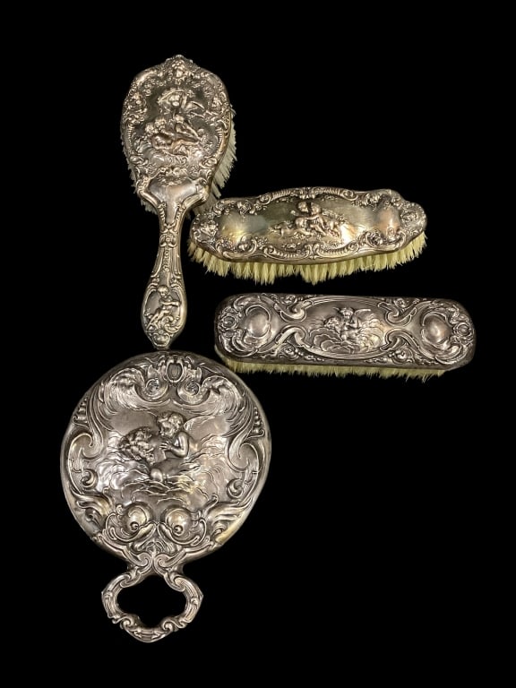 S. KIRK & SON AND OTHER STERLING AND COIN SILVER SERVING UTENSILS AND KNIVES, LOT OF FOURApr 23, 2026American Sterling Silver Vanity Accessories, 12Jun 11, 2026Three Sterling Silver Serving UtensilsApr 24, 2026(4) Piece Vanity Set, Sterling Silver Embossed Art Nouveau Rose Decor3 days LeftJames R. Armiger Sterling Silver Monogramed Dish, Sterling Silver Ink Blotter Roller and VintageApr 25, 2026Sterling Silver Vanity Brushes and AccessoriesApr 30, 2026Lot of Two Mirrors and Two Beveled GlassTrinket BoxesApr 25, 2026Two Spoons Comprising an American Coin Silver Fiddle Pattern Spoon and a Silver Rose Pattern Shell2 days LeftThree Sterling Silver Dressing ArticlesApr 24, 2026Gorham Sterling Silver Vanity Set with Mirror and Brush5 days LeftSterling Vanity Set w Brush, Mirror,Crystal Jars &Apr 25, 2026Occupied Japan KT Silverplate Tobacco Set7 days LeftVintage Hand Mirror Comb & Brush(es) Vanity SetApr 27, 2026