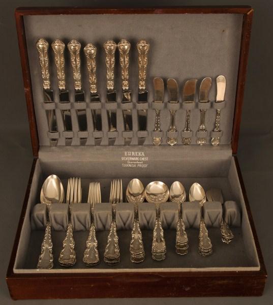 Large lot of sterling silver and silver handled utensils. To include: Durgin serving fork and spoonMar 01, 2026LARGE ASSORTMENT OF SILVERPLATE UTENSILS & COIN SILVER FORK5 days LeftInlaid Silver Plated Silverware Set Holmes & Edwards SilverwareMar 17, 2026Wallace Rose Point Sterling flatware in velvet lined box, 11 knives, 12 salad forks, 12 dinner4 days Left55 Piece Sterling Silver Wallace "Saxon" Flatware SetFeb 28, 202672 Piece Sterling Silver Frank Smith "Federal Cotillion" Flatware SetFeb 28, 2026GORHAM 'BUTTERCUP' STERLING SILVERWARE SET5 days LeftSTERLING. Towle Old Master Sterling FlatwareMar 08, 2026Knowles Roman Sterling Silver Flatware Set for 8 with Storage Chest 32 Pieces1 day LeftWilliam Rogers Stainless Flatware ServiceFeb 28, 2026International Silver Mademoiselle Sterling Silver Flatware Set 38 PiecesFeb 28, 2026International Sterling Silver Melody Flatware Set for 8 44 Pieces with Storage Chest8 hrs Left64 Piece Sterling Silver Towle "Legato" Flatware SetFeb 28, 2026Tuttle Sterling Silver Flatware Set3 days LeftLunt Summer Song Sterling Silver Flatware Set for 8 38 Pieces4 days LeftTowle King Richard Sterling Silver Flatware Set for 12 - 76 Pieces with Storage ChestMar 01, 2026