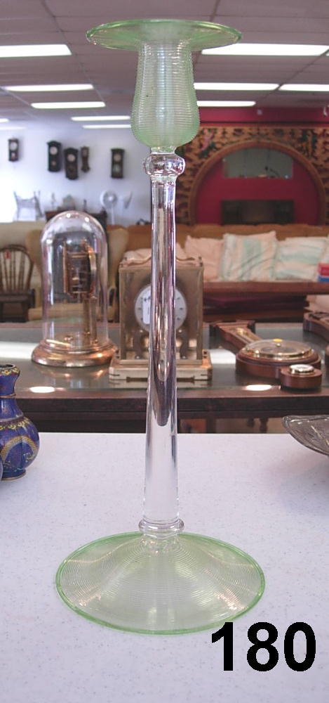STEUBEN ART GLASS CANDLESTICK GREEN