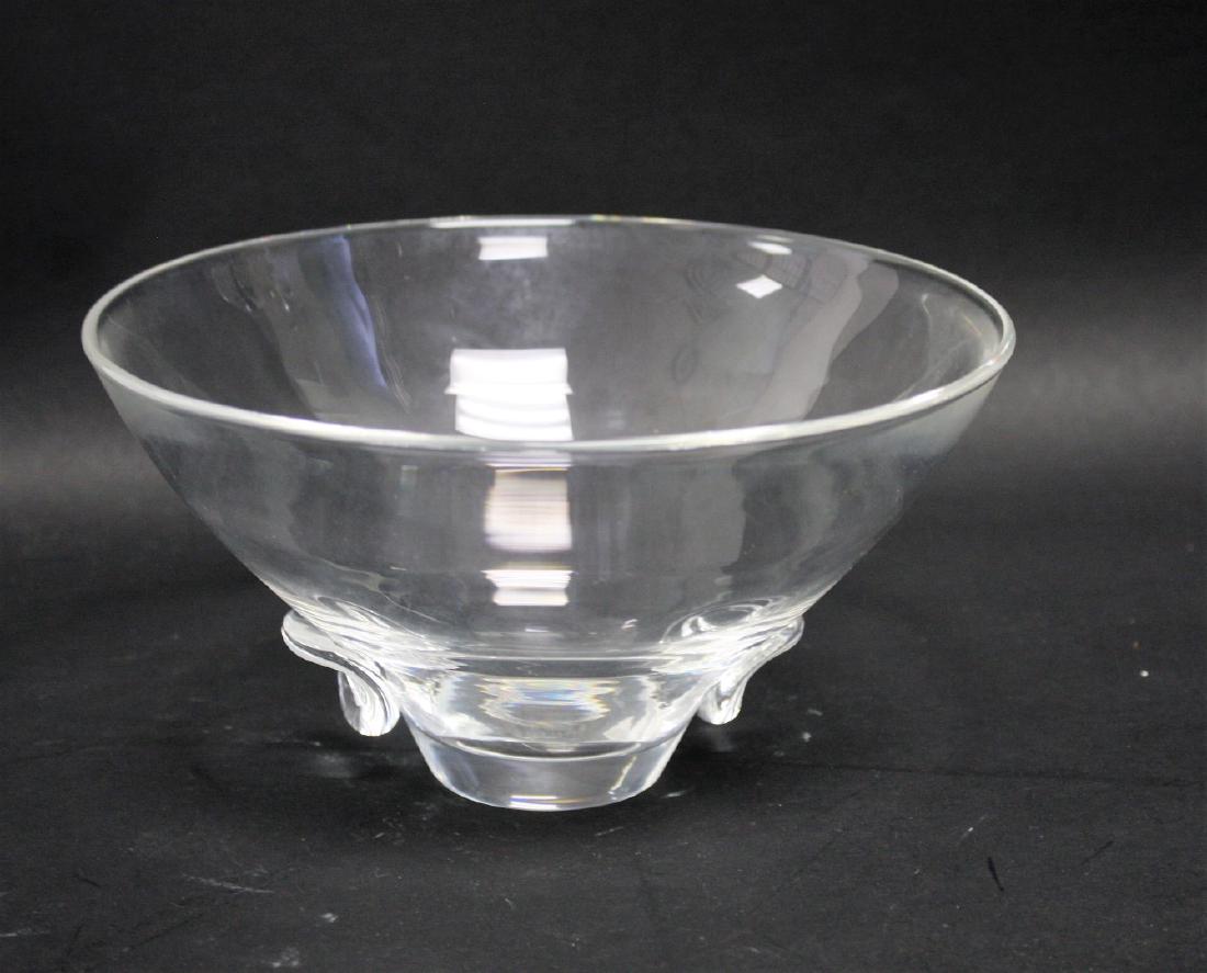 SoldSteuben Crystal 3 Footed Bowl, SignedSteuben Crystal 3 Footed Bowl, Signed. Measures 3.5 inches x 8 inches.See Sold Price