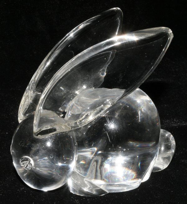 STEUBEN CRYSTAL SIGNED RABBIT H 3 1/2", L 4"