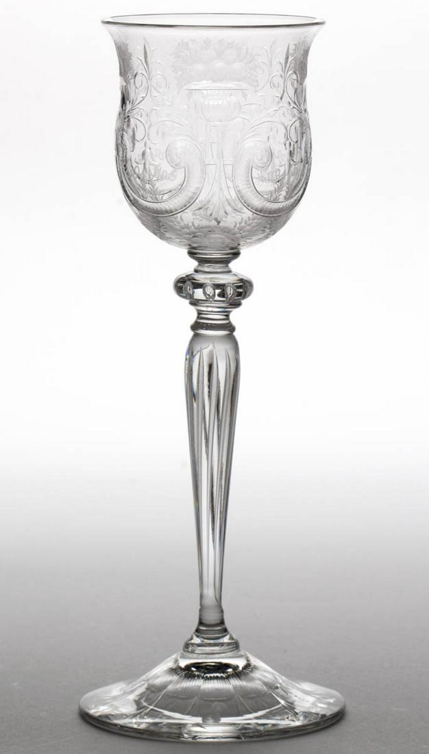 STEUBEN ENGRAVED ART GLASS GOBLET