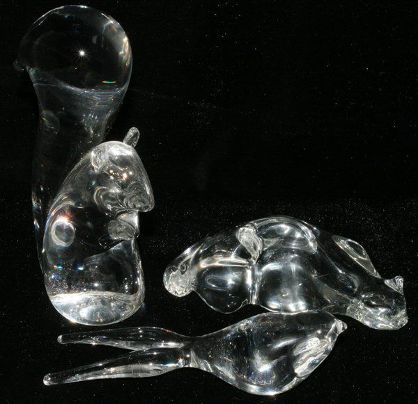 STEUBEN GLASS ANIMALS, THREE, L 6"-7"