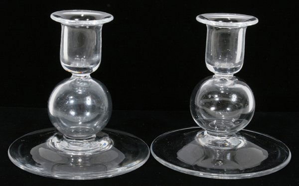 STEUBEN GLASS CANDLESTICKS, PAIR, H 4 3/4"