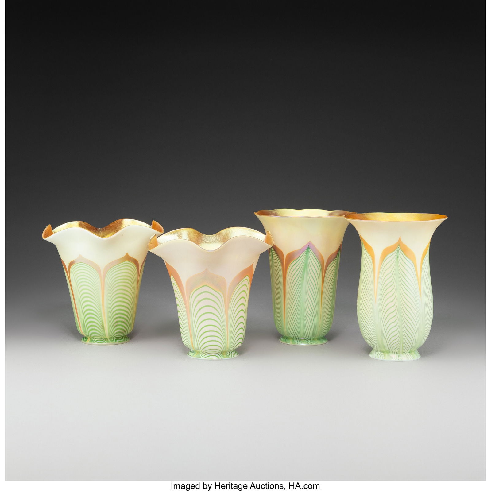 Steuben Glass Works Four Pulled Feather Shades,