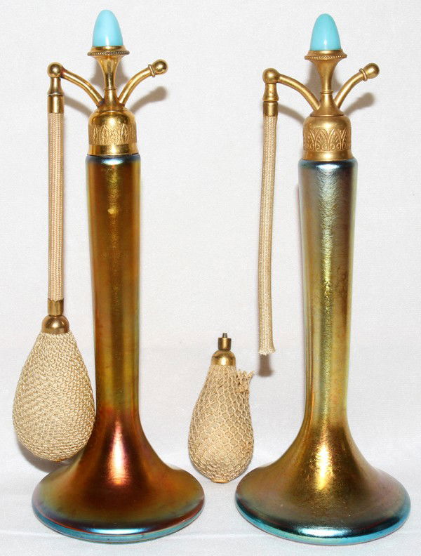 STEUBEN GOLD AURENE GLASS PERFUME ATOMIZERS,