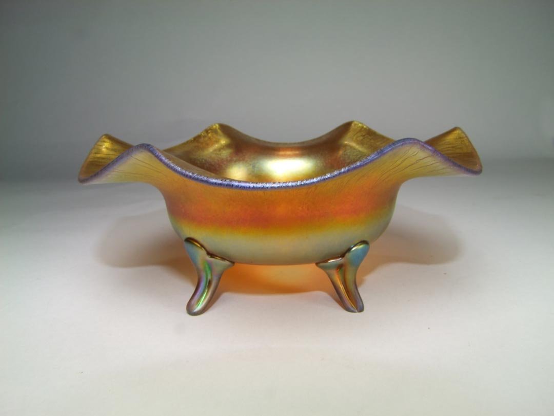 Steuben Gold Footed Ruffled Bowl