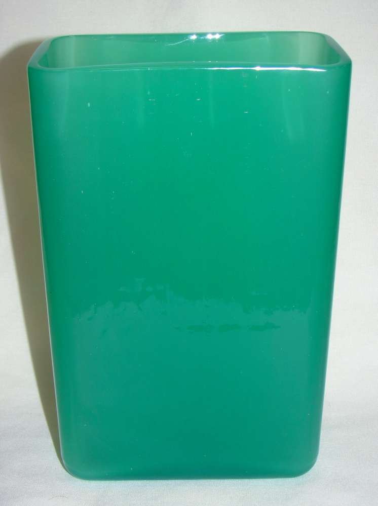 Blenko Style Emerald Green Cast Glass Tapered Square Vase