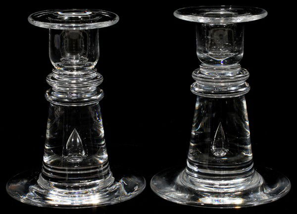 STEUBEN TEARDROP CANDLESTICKS, PAIR, H 4 1/2"