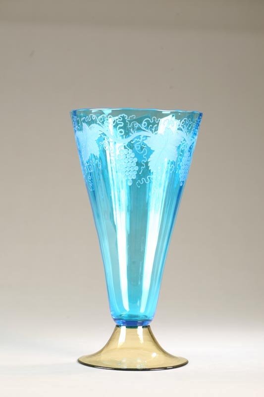 STEUBEN VASE. Optic ribbed in celestial blue with