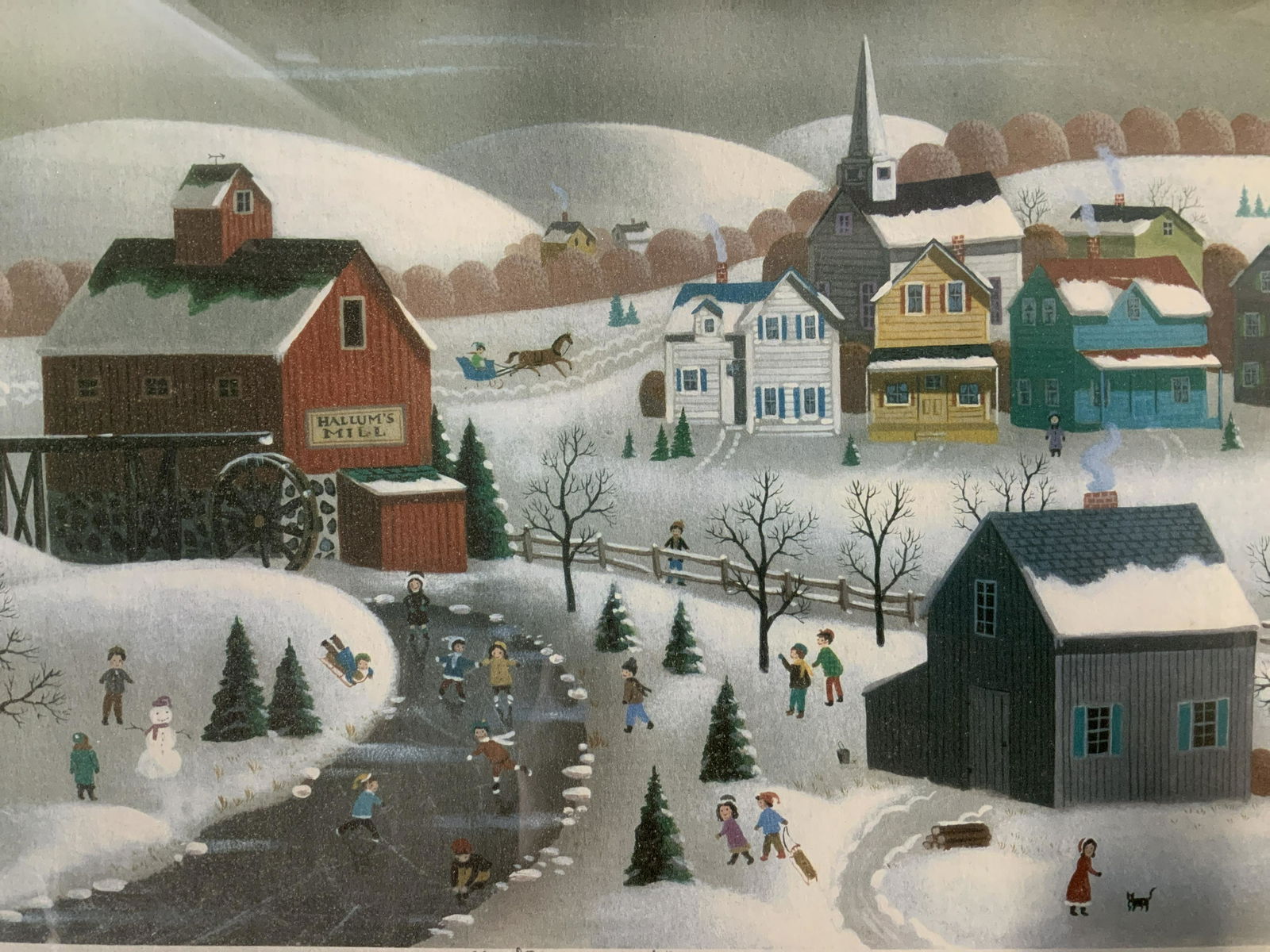 STEVEN HEN Signed Skating Pond Offset Lithograph