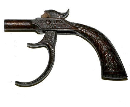 SoldPair Cast Iron Toy Cap Guns, Stevens, Pluck & CometEach of these small guns are cast iron. The Comet is J&E Stevens with the name on each side and no other markings. The hammer cocks but does not stay, measures approx 5 1/2" long. The Pluck is also J&See Sold Price