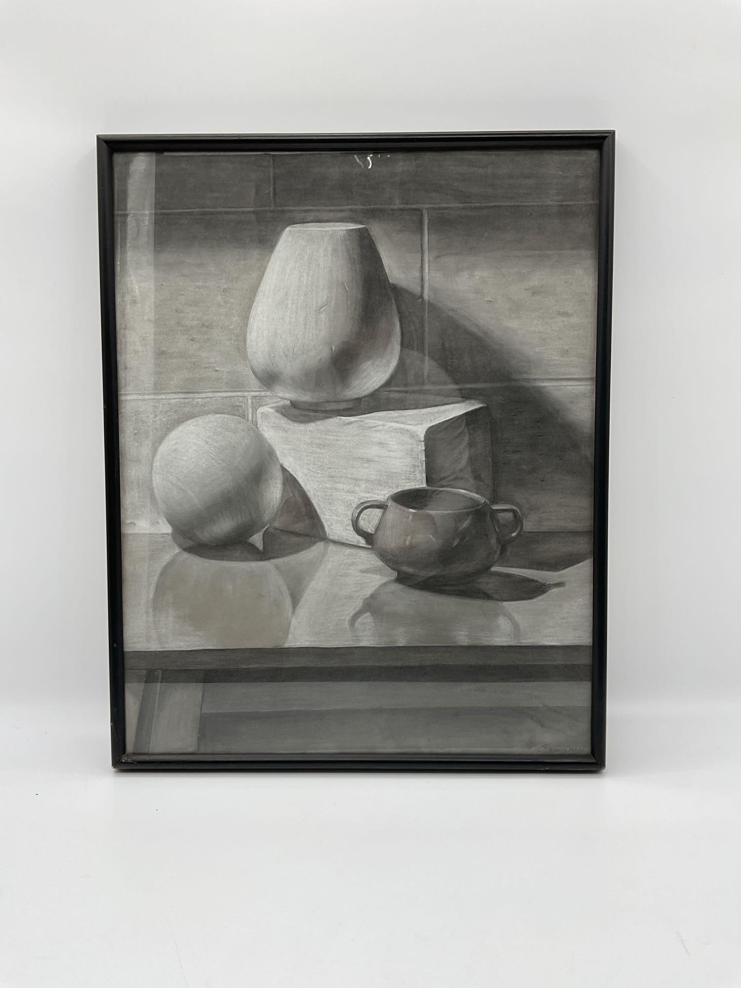 Early 20th century, English School, Oil on canvas, A still life study with daffodils and irises in aEarly 20th century, English School, Oil on canvas, A still life study with daffodils and irises in a blue vase, a necklace and two Oriental figures, with a circular window behind. Signed with monogram