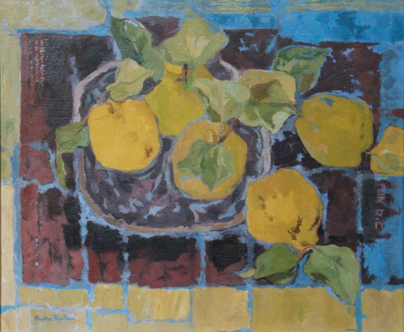 SoldSergei Rudnev Russian Still Life Lemons PaintingSergei W. Rudnev (b.1956) Russia Still Life Painting with Lemons. Signed with conjoined Cyrillic "CP and dated "88" lower left, annotations and paper gallery tag on verso. Oin on canvas, framed SightSee Sold Price