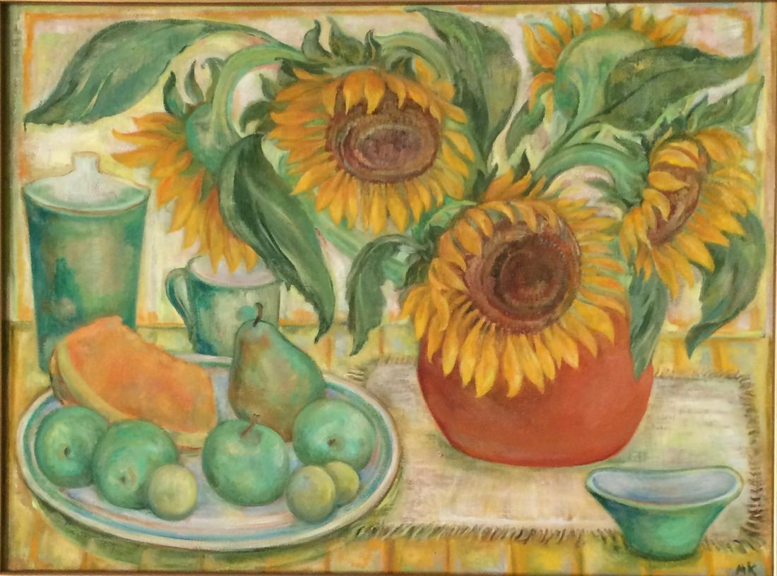 Signed Oil Painting of Sunflowers in Vase by M. Brys, Still Life, Framed, 31 x 27 inBridge's Auction$50(4 bids)