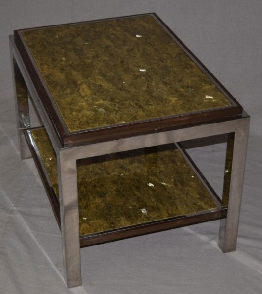 Stone & Chrome 2 Tier Table manner Willy Rizzo