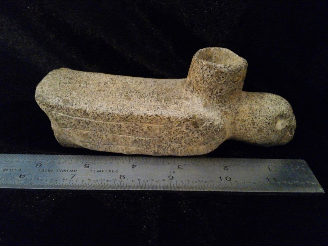 STONE HAWK EFFIGY PIPE