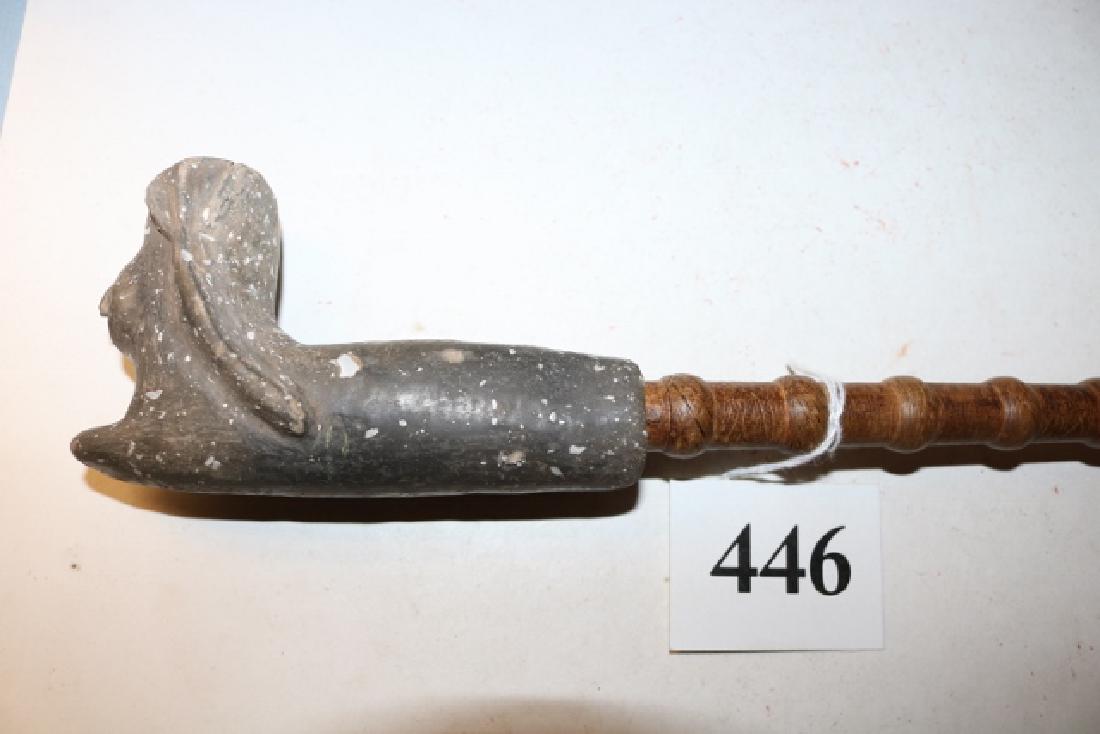 Stone Pipe human face on wooden pipe stem