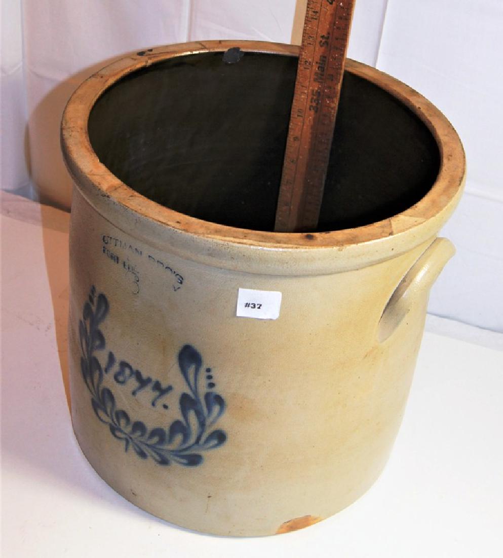 Stoneware 6-gallon crock dated 1877, Ottman Bros.
