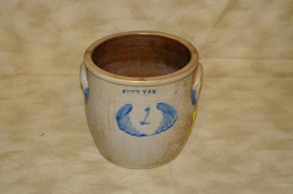 Stoneware Blue Decorated 1 Gallon Handled Crock