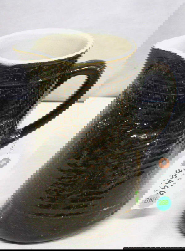 STONEWARE PITCHER GRAPES DARK BROWN CHECKERED WITH