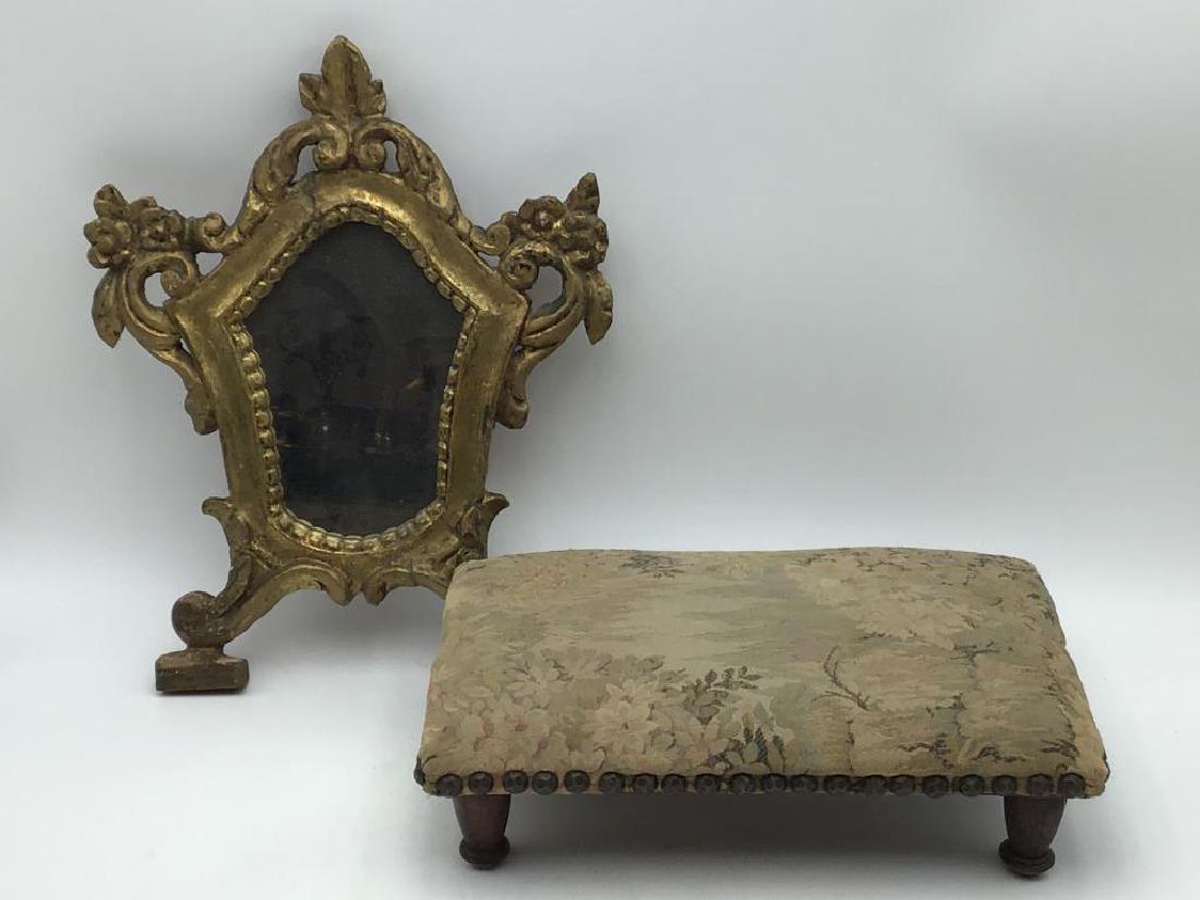 Stool & early gilt framed mirror