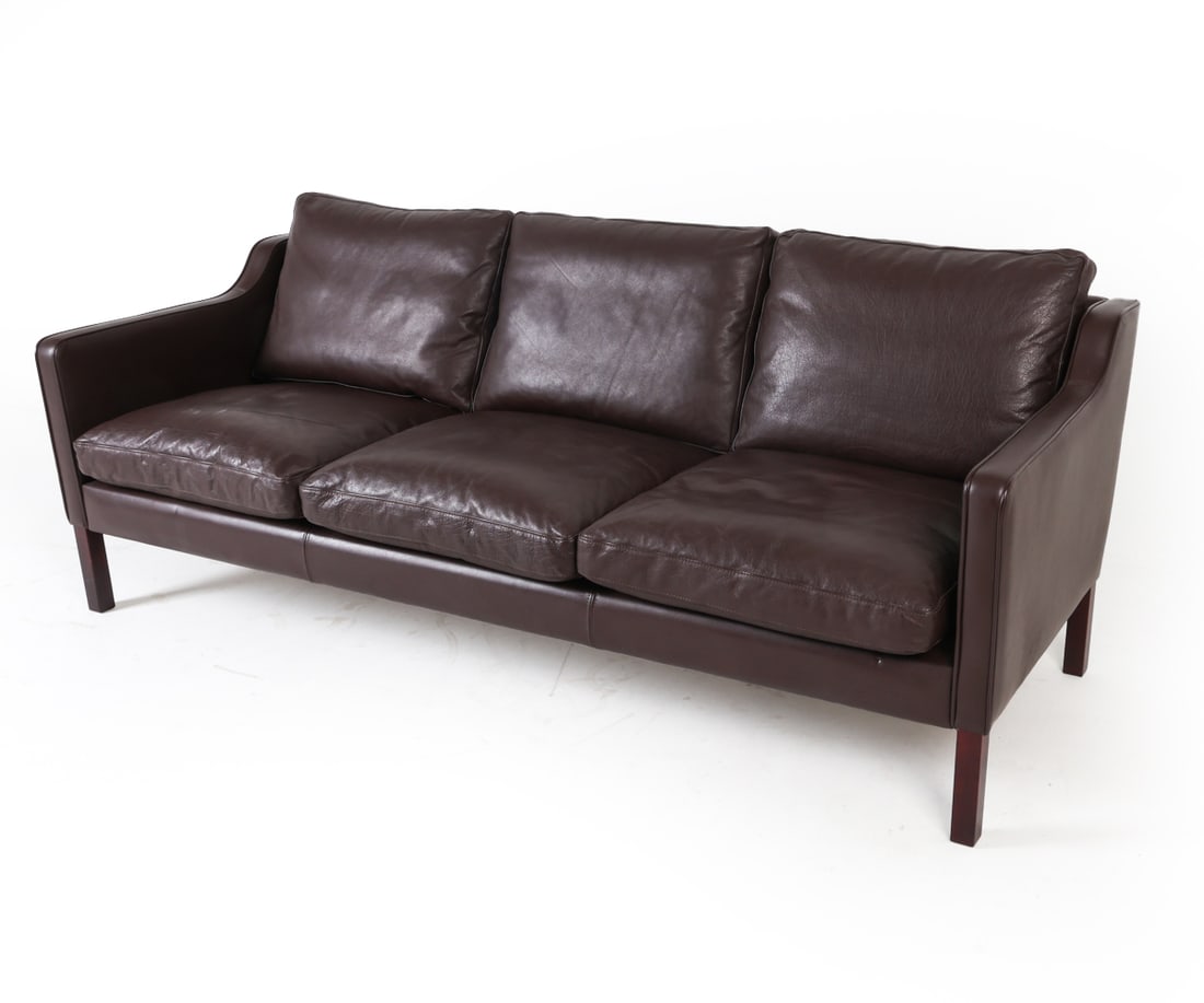 Danish Modern Dark Brown Leather 3 Seater Sofa
