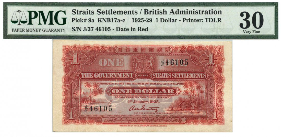 Straits Settlements $1 1925 Pmg 30