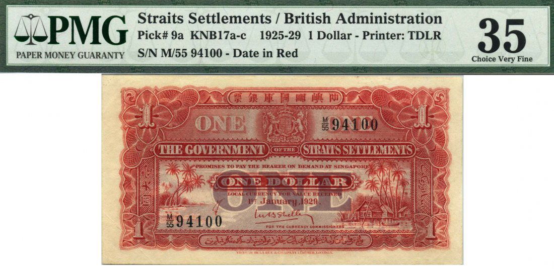 STRAITS SETTLEMENTS $1 1929 PMG 35