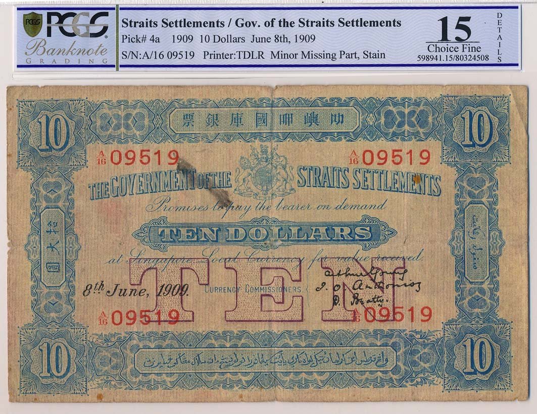 STRAITS SETTLEMENTS $10 1909