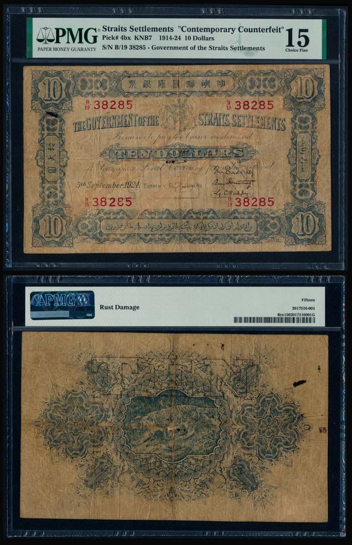 Straits Settlements $10 1924 Cont Counterf
