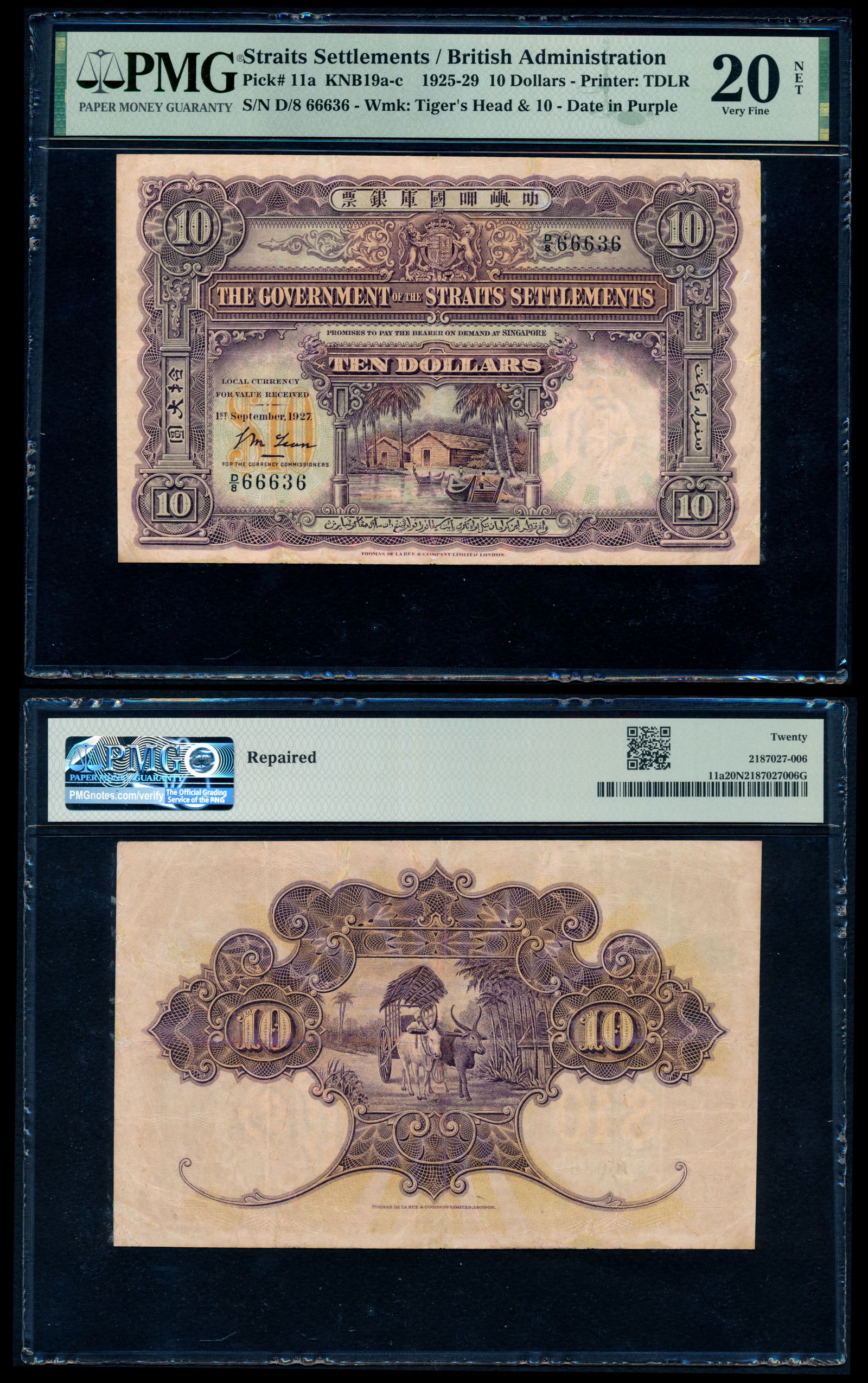 Straits Settlements $10 1927 PMG