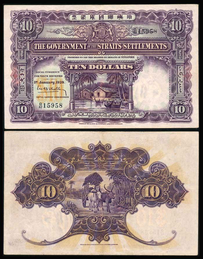 Straits Settlements $10 1929 VF