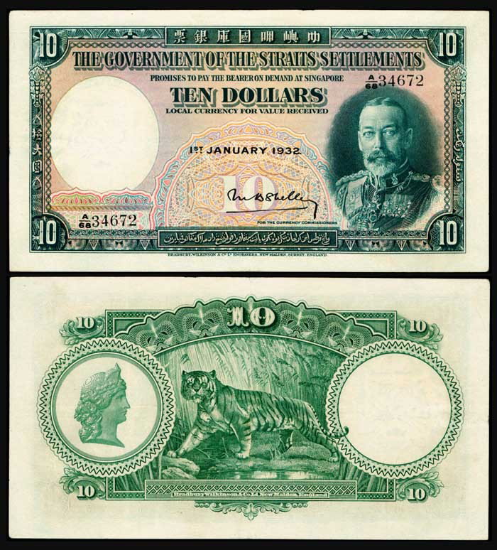 Straits Settlements $10 1932 KGV P18a EF