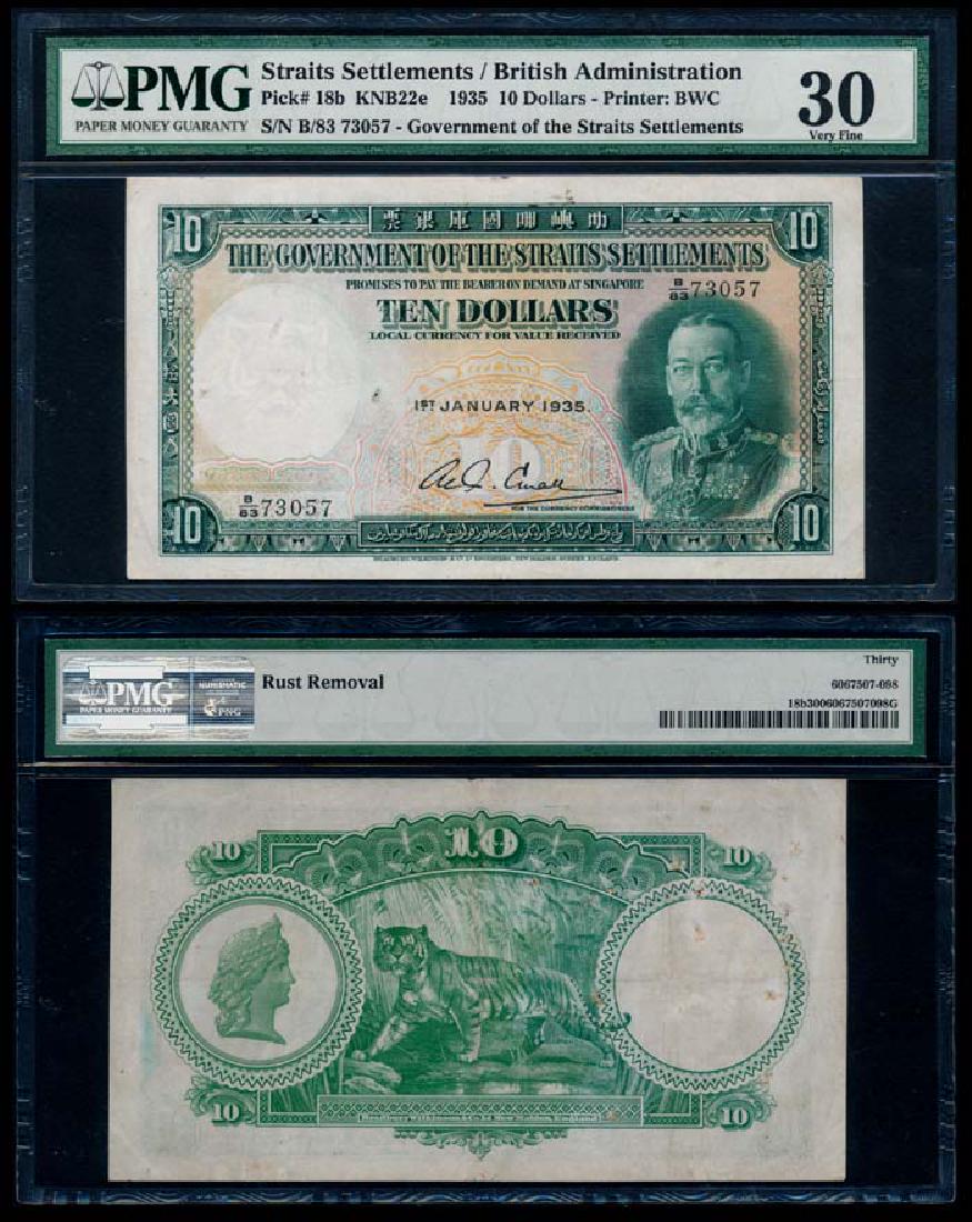 Straits Settlements $10 1935 KGV PMG VF30