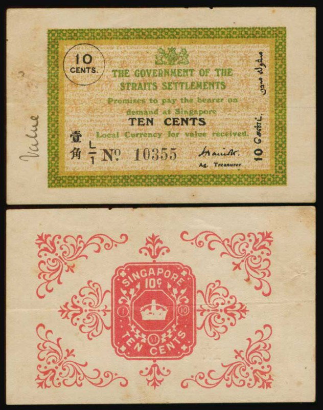 Straits Settlements 10 Cents 1917 P6a