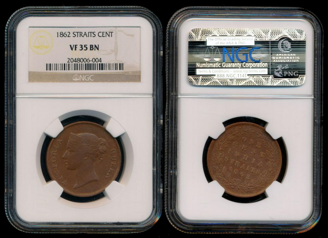 Straits Settlements 1c 1862 NGC VF35BN