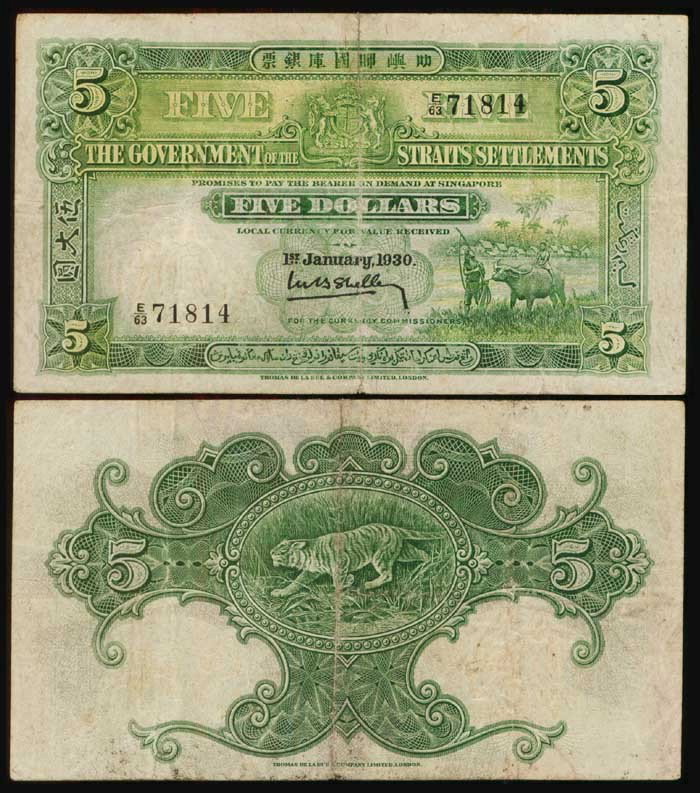 Straits Settlements $5 1930 P10b VG