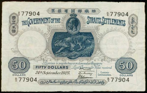 Straits Settlements $50 1925 KGV P12a GVF
