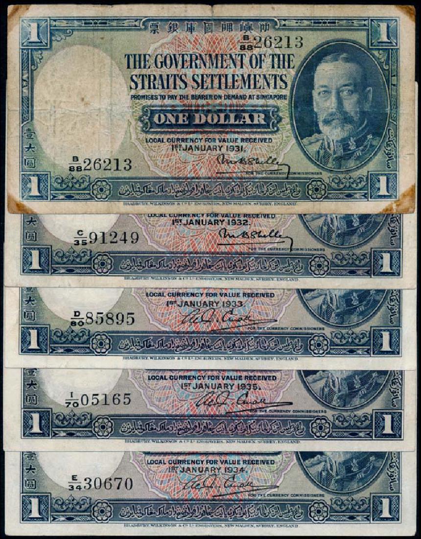 Straits Settlements 5x$1 1931-35 KGV