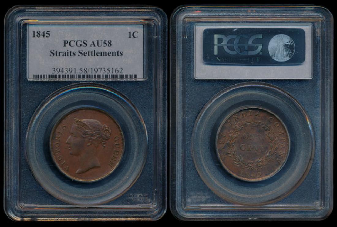 Straits Settlements EIC 1c 1845 PCGS AU58