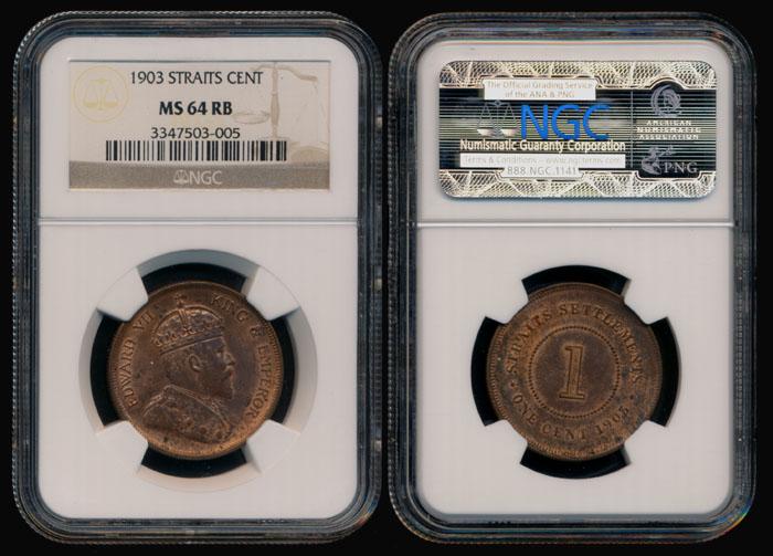 Straits Settlements KEVII 1c 1903 NGC MS64RB