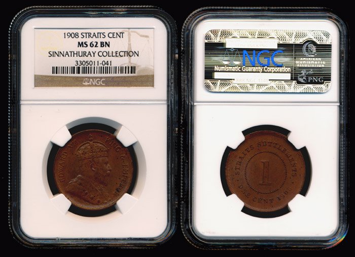 Straits Settlements KEVII 1c 1908 NGC MS62