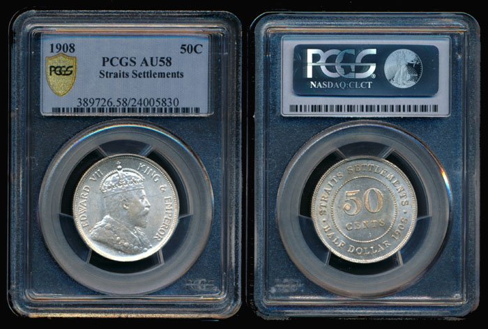 Straits Settlements Kevii 50c 1908 Pcgs Au58