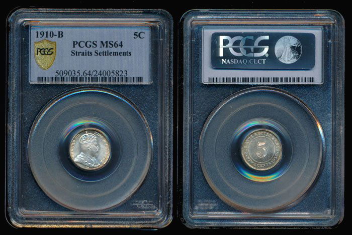 Straits Settlements KEVII 5c 1910B PCGS MS64